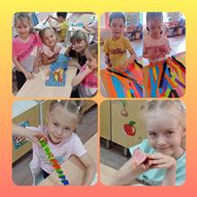 Многие помнят, как в детстве делали замечательную игрушку. Вы сейчас ее увидите. Когда мы с детьми нашей группы стали придумывать ей название, то были разные предложения: «Гармошка», «Пружинка», «Разноцветная змейка», «Веселая змейка». Но когда мы выложили детские работы в виде змейки и приставили головку, в которой вы узнаете «игрушку-шутку», то почти единодушно решили, что это «Веселая змейка».