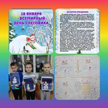 18 января празднуется Международный день Снеговика. Сегодня ребята подготовительной группы №1(8) познакомились с историей возникновения этого забавного зимнего героя. Прочитали про него сказку, собрали из геометрических фигур, поиграли в подвижную игру "Снеговик". После чего нарисовали картину и аппликацию снеговика.