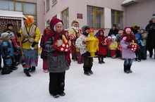 На веселый праздник Масленицы собрался весь детский сад. В гости к детям пришли скоморохи, Емеля, баба Яга и Кикимора. Все вместе играли с интересные игры, соревновались и ели блины. В заключение праздника по древнему обычаю было сожжено чучело Масленицы. Всем было очень весело!