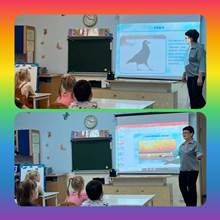 В рамках взаимопосещения ОД 16.11.2023 в первой младшей татарской группе № 1(4) прошло открытое занятие по художественно-эстетическому развитию-рисование в нетрадиционной технике "Пятнышки для жирафа". Малыши познакомились с жителем Африки- жирафом, который по пути к ребятам растерял все свои пятна. Ребята решили помочь гостю и нарисовать ему новые пятнышки. Воспитанники под руководством воспитателя Нуреевой Л. Х. освоили новую технику- примакивание губкой. Малыши работали увлеченно, с интересом и старанием, результатом чего явились новые пятнышки на жирафе. -
