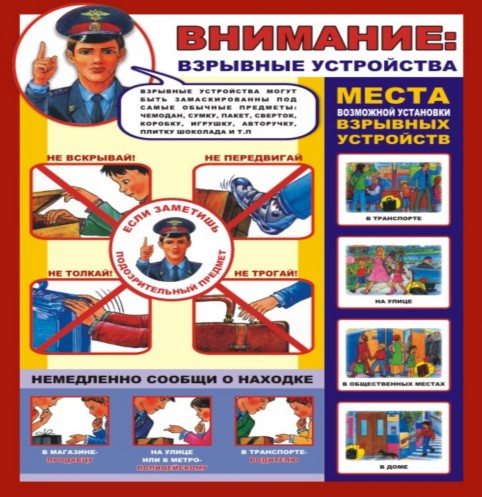 Совершая поездку в общественном транспорте обращайте внимание на оставленные сумки, свертки и др. бесхозные предметы, в которых могут находиться самодельные взрывные устройства. Немедленно сообщите о находке водителю, машинисту поезда, работнику милиции. Не открывайте их, не трогайте руками, предупредите стоящих рядом людей о возможной опасности.