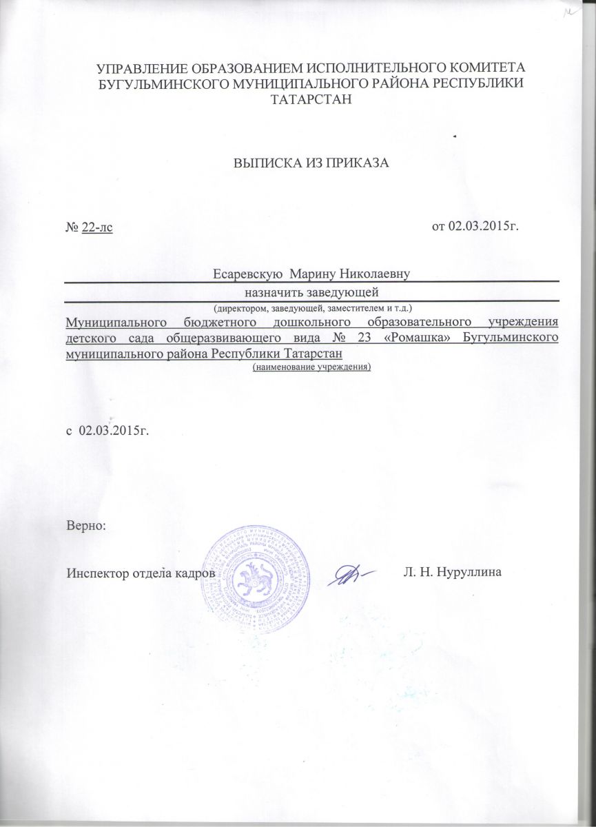 Выписка из приказа о назначении руководителя МБДОУ № 23.jpg
