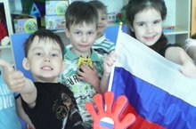 В честь празднования Дня России музыкальный руководитель Кабанова Наталья Сергеевна организовала детский танцевальный флешмоб. Идейно-композиционной изюминкой стал Российский триколор. Выступление проходило под ритмичную песню Олега Газманова "Вперед Россия".