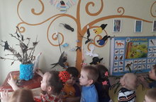 Дети первой младшей группы, познакомились с пернатыми обитателями нашего края. Родители воспитанников открыли творческую мастерскую, где создали весеннее дерево с птицами.