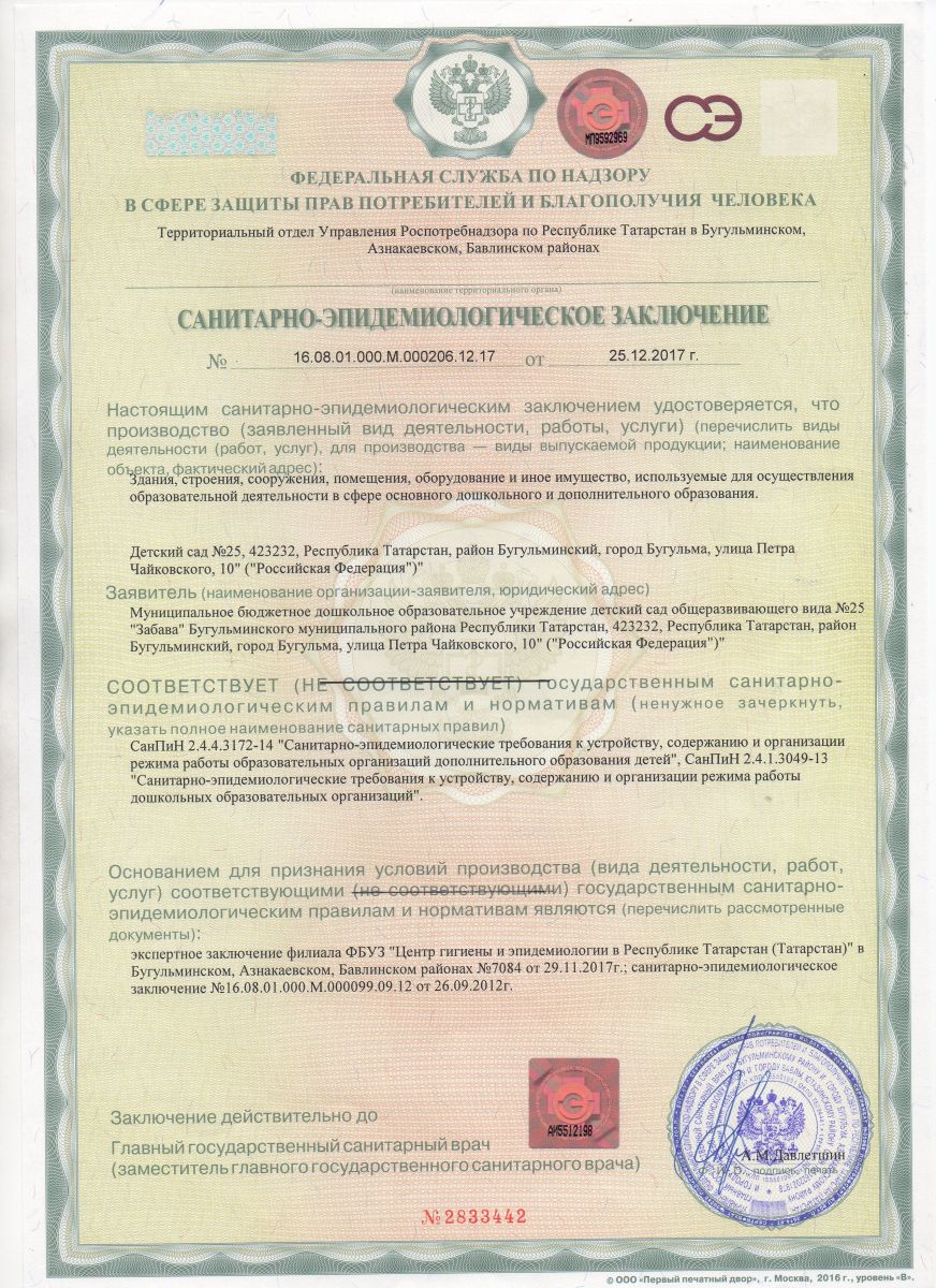 Санитарно-эпидемиологическое заключение на образовательную деятельность