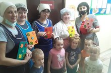 Воспитанники средней группы 1 детского сада № 27 «Золотой ключик» ,поздравили своих поваров и их помощников с праздником , вручив им открытки с поздравлениями сделанные своими руками.
