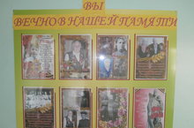 Несмотря на давность прошлых лет, Великая Отечественная война является героическим символом для всего Отечества, а тяжелые неизгладимые последствия, которые разрушили не только страну, но у и унесли миллионы человеческих судеб – стали примером мужества и героизма в истории нашей страны и всего мира. К 70-летию Победы коллектив детского сада организовал стенд "Вы вечно в нашей памяти!" Сотрудники принесли фотографии своих дедушек и бабушек, которые были участниками ВОВ или труженниками тыла во время войны.