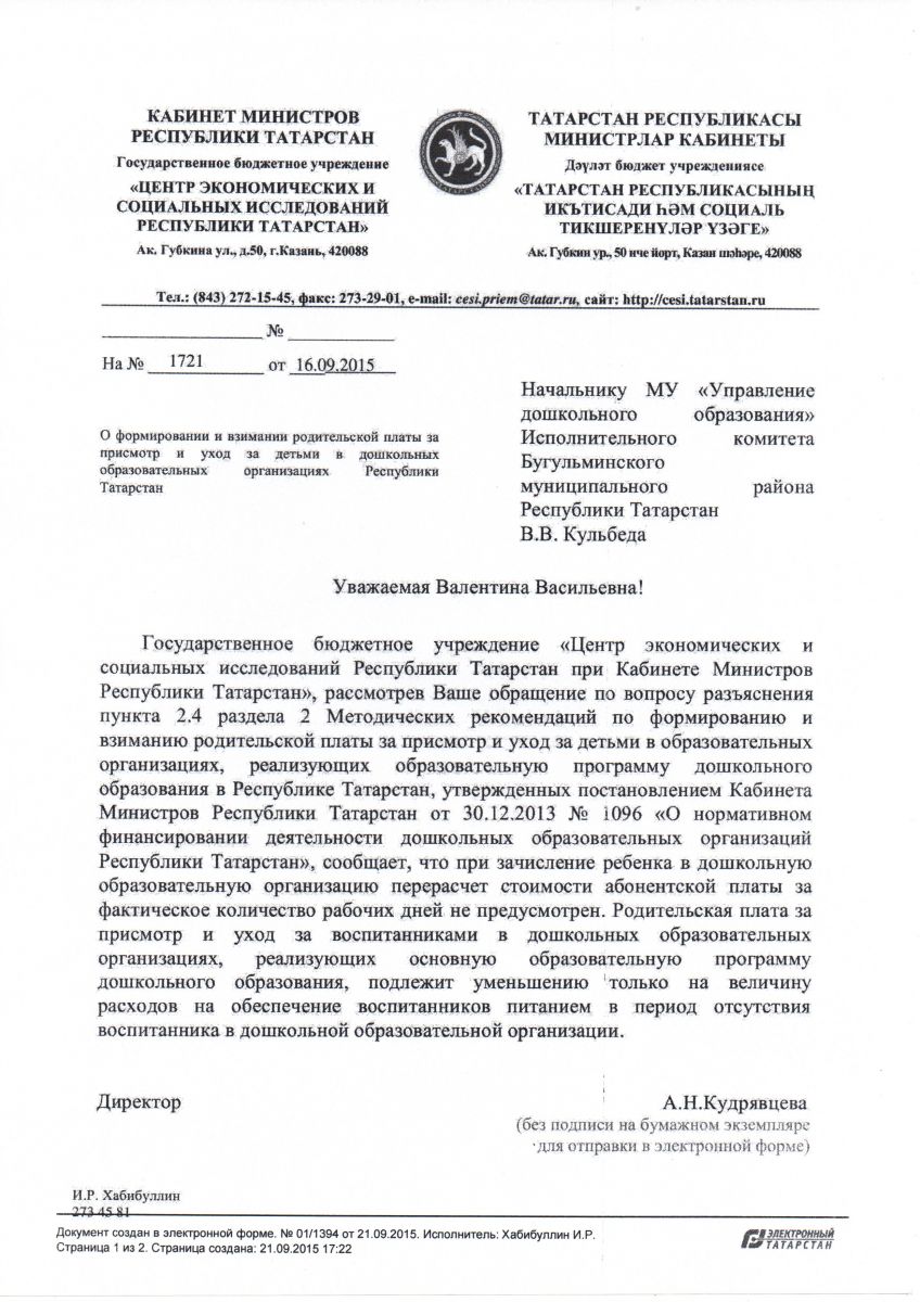 ПИСЬМО МОИН РТ "О ПЕРЕЧНЕ КАНЦЕЛЯРСКИХ ПРИНАДЛЕЖНОСТЕЙ В ДЕТСКОМ САДУ"