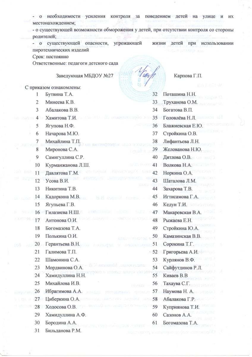 Приказ "Об усиления контроля безопасности в детском саду №27 "Золотой ключик" стр.1, стр.2