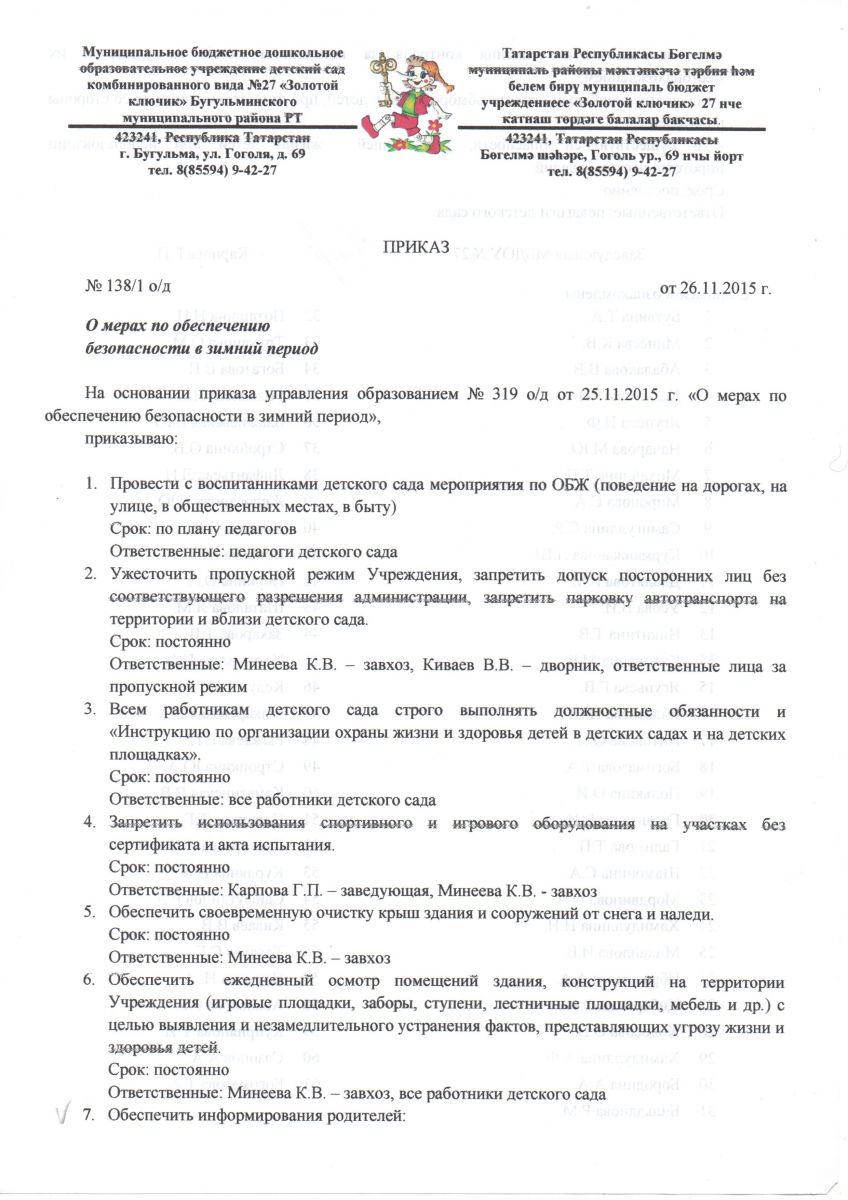 Приказ "О мерах по обеспечению безопасности в зимний период" стр.1, стр.2