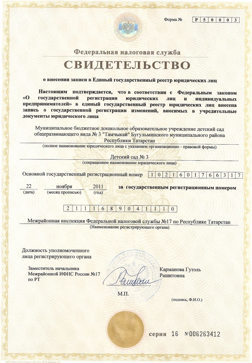 Свидетельство о внесении записи в Единый государственный реестр юридических лиц
