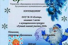 Ежегодно мы участвуем в муниципальном конкурсе «Лучший зимний участок» и занимаем призовые места. В этом году воспитатели детского сада приняли самое активное участие в совместном с родителями изготовлении снежных фигур, тематика которых в каждой группе была разнообразной: «Умка со свей мамой», «Веселая ферма», «Новогодняя сласть», «Цирк, цирк, цирк», «Өч аю», «Морская волна». Мы заняли почетное первое место в муниципальном конкурсе «Лучший зимний участок – 2020». Ура!!!
