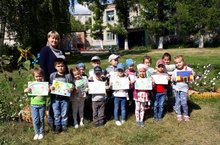 В соответствии с программой летней оздоровительной работой детского сада дети старшей группы №1 провели день под девизом «Разноцветная игра».