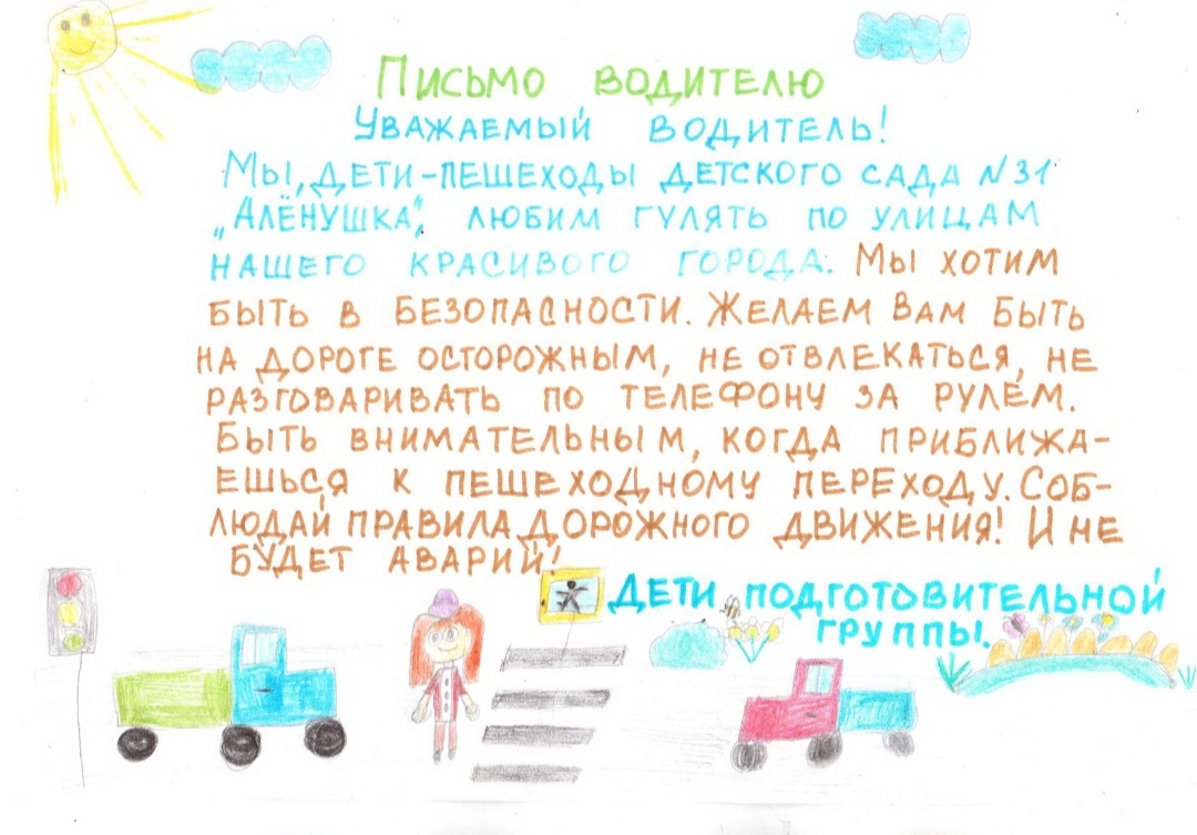 В рамках проведения акции по ПДД, воспитанники подготовительной группы написали "Письмо водителю"._________