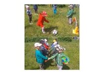 Сегодня в детском саду, прошел «День футбола». Дети старших групп познакомились с историей возникновения футбола. У дошкольников, как у настоящих футболистов, прошла разминка с различными видами бега, ходьбы, упражнений для рук и ног, а затем тренировка. Дети были организованы, ответственны, старались показать все свои умения и навыки. Они отбивали мяч на месте и в движении, вели его «змейкой» и головой, водили мяч ногами по прямой и в разных направлениях, передавали мяч друг другу, учились останавливать мяч ногой. В игре все было по-настоящему: название команд, выбор капитанов, и приветствие команд друг друга — это знак принятия соперника, дружеского настроя и обещания честной игры. ____________________ Бүген балалар бакчасында «футбол көне» узды. Зурлар төркеме балалары футболның барлыкка килү тарихы белән таныштылар. Мәктәпкәчә яшьтәге балаларның, чын футболчылар кебек үк, төрле йөгерү, йөрү, кул һәм аяк өчен күнегүләр, ә аннан соң күнегүләр узды. Балалар оештырылган, җаваплы иде, барлык осталыкларын һәм күнекмәләрен күрсәтергә тырыштылар. Алар тупны урында һәм хәрәкәттә ыргыттылар, аны «елан» белән һәм баш белән алып бардылар, тупны турыдан-туры һәм төрле юнәлешләрдә аяклар белән йөрттеләр, тупны бер-берсенә тапшырдылар, тупны аягы белән туктатырга өйрәнделәр. Уенда барысы да чын-чынлап иде: мандалар исеме, капитаннарны сайлау, һәм командаларның бер-берсен сәламләү-көндәшне кабул итү, дусларча кәеф һәм гадел уен вәгъдәләре.