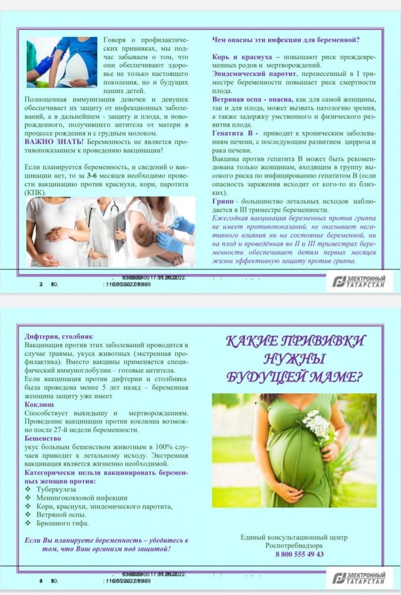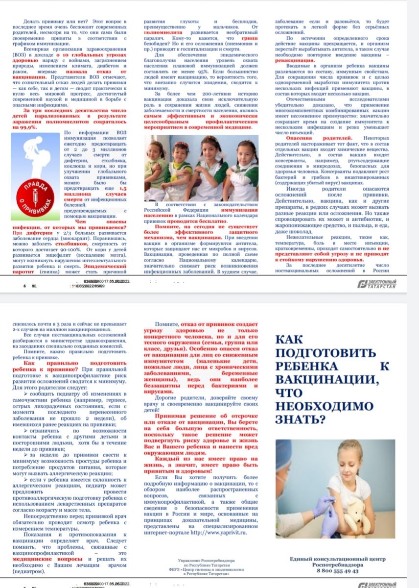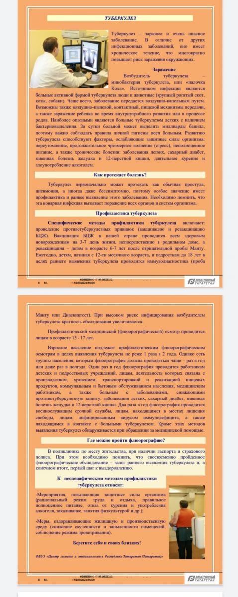 Памятки в рамках реализации памятных дат «Европейской недели иммунизации» и в целях профилактики распространения туберкулеза среди населения / «Европа иммунизация атнасы» истәлекле даталарын гамәлгә ашыру кысаларында һәм халык арасында туберкулез таралуны профилактикалау максатларында белешмәлекләр 18.05.2022