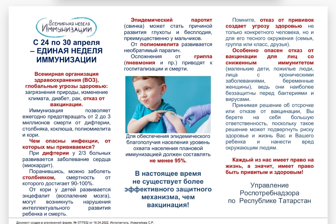 Всемирная неделя иммунизации 21.04.2022