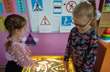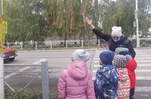Воспитанники старшего дошкольного возраста были на экскурсии, посвящённой правилам дорожного движения. Воспитатель группы в доступной для детей форме рассказывали о дорожных знаках, о сигналах светофора, о том, как правильно переходить дорогу, на какой сигнал светофора. Отметили, что на улицах города нужно быть внимательными и осторожными. Подойдя к пешеходному переходу, дети ещё раз послушали о правилах перехода через дорогу и, дождавшись нужной команды светофора, группа благополучно перешла дорогу по зебре.