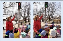 Цель данной экскурсии –закрепить знания детей о работе светофора: пешеходного и транспортного, познакомить с перекрестком и правилами поведения на этом участке дороги. У светофора, который стоит на перекрестке, мы с ребятами вспомнили, что такое регулируемый перекресток, пешеходный переход, проезжая часть, тротуар. Посмотрели, как работает транспортный и пешеходный светофоры. Понаблюдали, как проезжую часть переходят пешеходы, как проезжают машины на перекрестке.