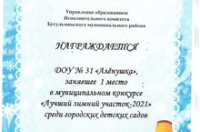 Безнең балалар бакчабыз “Иң яхшы кышкы участок – 2021” муниципаль бәйгесендә шәһәр балалар бакчалары арасында 1нче урын яулады
