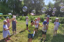 Сегодня во всех группах нашего детского сада прошло развлечение на свежем воздухе «День мыльных пузырей». Цели и задачи данного развлечения - использовать благоприятные для укрепления здоровья детей условия летнего времени и добиться, чтобы ребёнок окреп, поправился и закалился, научился понимать и любить удивительный, прекрасный окружающий мир.Запуская пузыри, дети любовались их красотой и разнообразием. Ребята были очень довольны и счастливы. Ведь мыльные пузыри для них - это волшебство. -