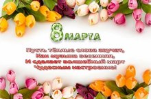 Дорогие, милые женщины, поздравляем вас с Международным женским днём! Желаем вам чудесных дней, наполненных радостными событиями, красивыми словами, любовью и душевностью. Пусть ваши желания исполняются всё чаще, близкие окружают вас теплом и нежностью, заботой и безграничным вниманием. Счастья вам, и пусть оно не заканчивается!