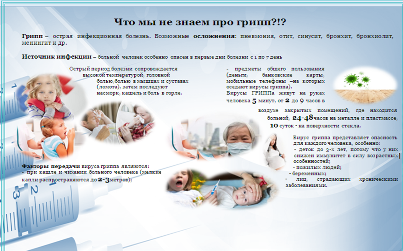 В соответствии с письмом Управления Роспотребнадзора по Республике Татарстан от 17.10.2019 № 07/34924 «О мероприятиях по профилактике гриппа» в связи с началом сезона заболеваемости гриппом и ОРВИ просим вас обеспечить соблюдение температурного режима в образовательных организациях, проведение дезинфекции и проветривания, противоэпидемических мероприятий при выявлении групповых заболеваний, а также частичное и полное закрытие общеобразовательных организаций при распространении заболеваемости гриппом и ОРВИ более 20 % от списочного состава. -
