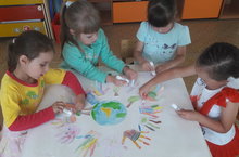 С воспитанниками старшего дошкольного возраста провели беседу, посвященная Дню народного единстваЦель беседы: Приобщение воспитанников к истории России.Задачи:1. Расширять представления о родной стране, о государственных праздниках.2. Углублять и уточнять представления о Родине – России.3. Воспитывать любовь и гордость за свою Родину; уважение к людям, прославившим Россию; нравственно - патриотические чувства.Выполнили творческую работу "Земля - наш общий дом" -