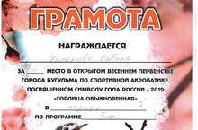 Наша воспитанница Хасанова Сабина заняла III место в Открытом весеннем первенстве города Бугульма по спортивной акробатике