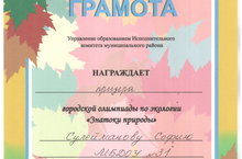 Наша воспитанница Сулейманова София стала призером в городской олимпиаде по экологии "Знатоки природы"