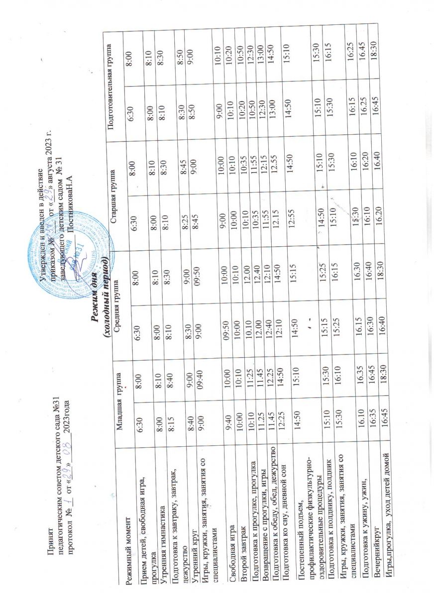 Режим дня (холодный период) 2023- 2024 уч.год
