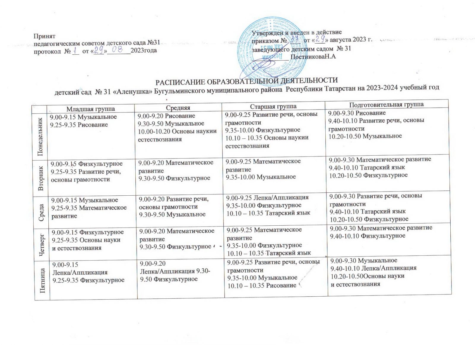 Регламент организованно-образовательной деятельности 2023 - 2024 уч.год