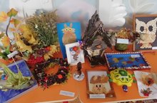 В нашем детском саду прошла выставка поделок из природного материала «Осенняя фантазия».На выставке были представлены работы детей, созданные совместно с родителями и педагогами.Для создания неповторимых шедевров использовались дары осени – овощи, фрукты, сухоцветы, шишки, мох, ягоды. В каждой работе прослеживалась творческая индивидуальность и фантазия каждого ребенка. Все работы оригинальны, неповторимы и интересны.