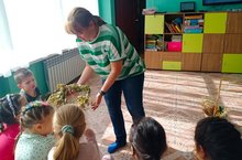 Группу "Пилоты" посетила работник Детская библиотека г.Бугульма Котлова А. А. Она принесла детям от Лесовичка венок из листьев, травы, собранные летом и засушенные. Дети попрощались с летом. Вспомнили игры в летний период, поиграли в викторину "Что растет на грядке"