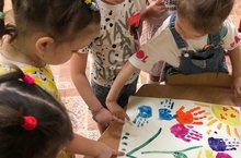 Во 2 младшей группе «Ромашка» день Волшебных ладошек! Ладошки - и цветочки, и листочки, и солнышко - замечательная коллективная работа!!!