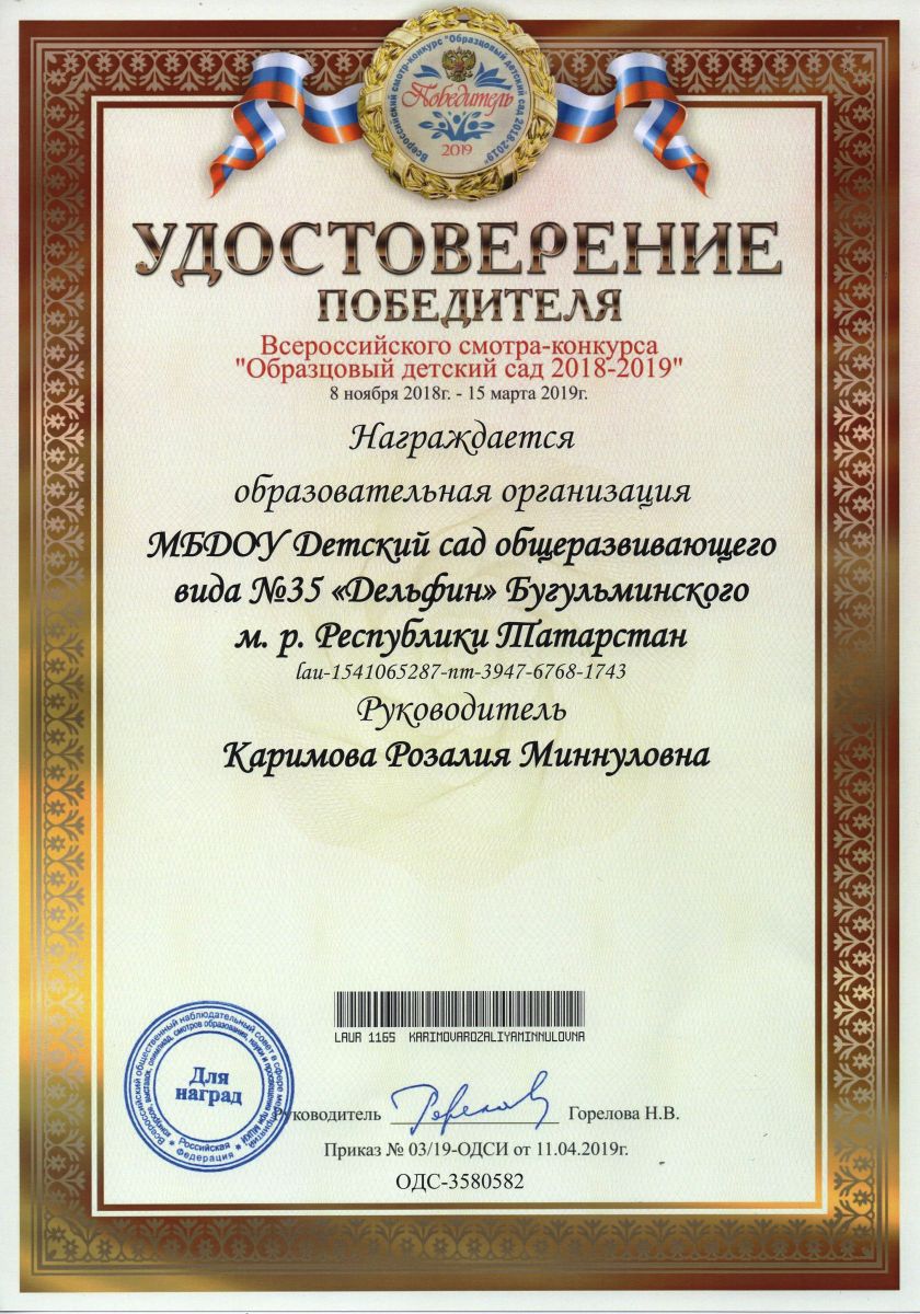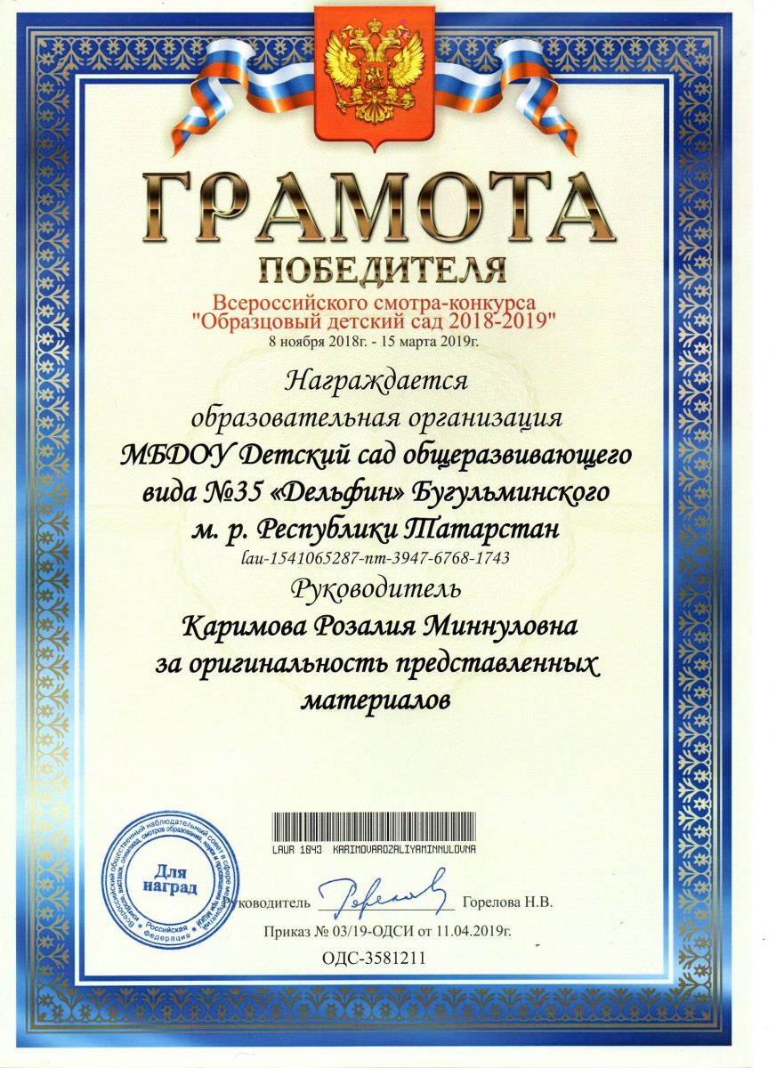 «Всероссийский смотр-конкурс "Образцовый детский сад 2018-2019"»