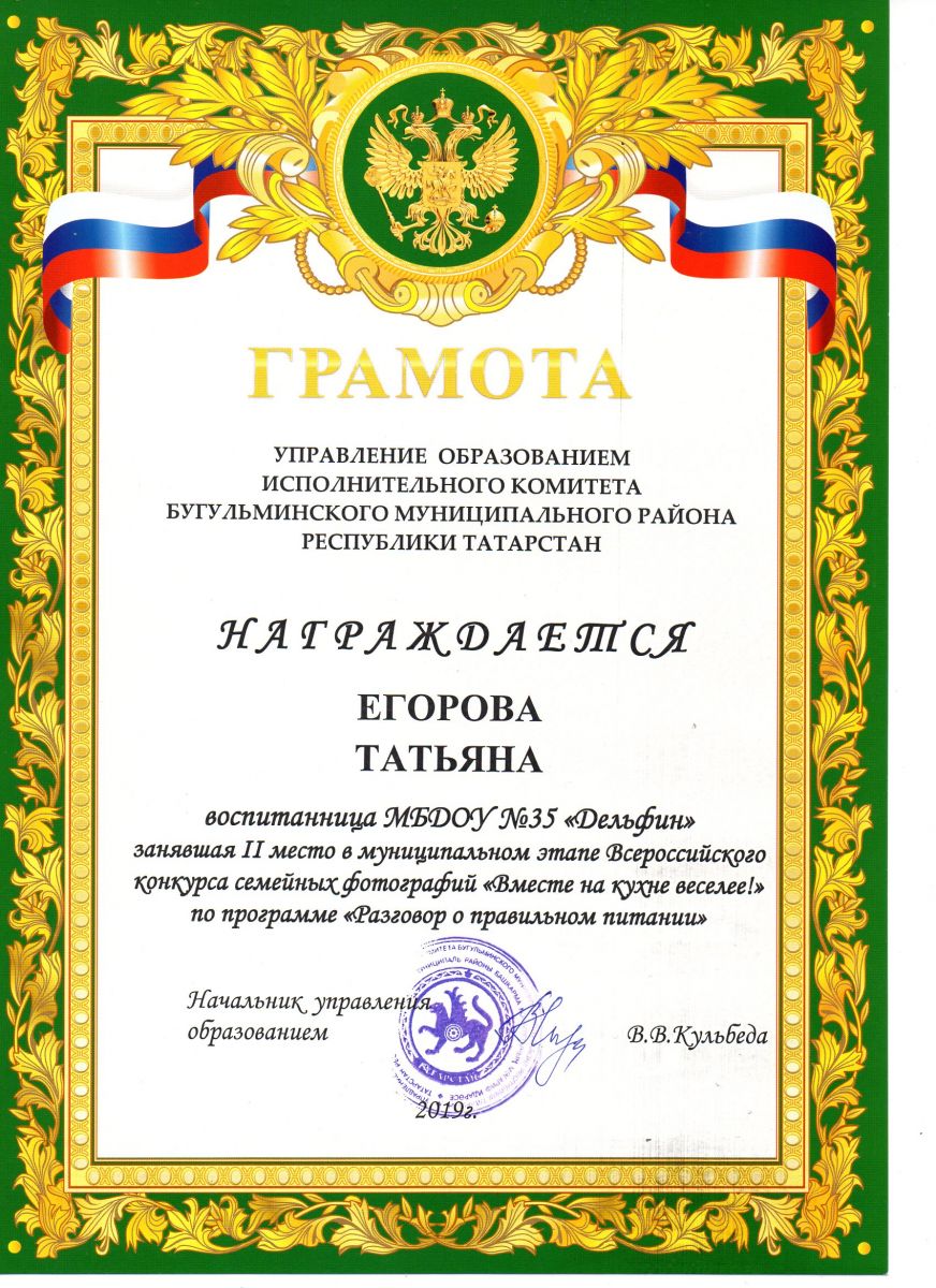 Опубликовано: 13.06.2019Наша воспитанница Егорова Татьяна заняла почётное 2 место на Всероссийском конкурсе семейных фотографий "Вместе на кухне веселее!" по программе "Разговор о правильном питании". Поздравляем!!!!