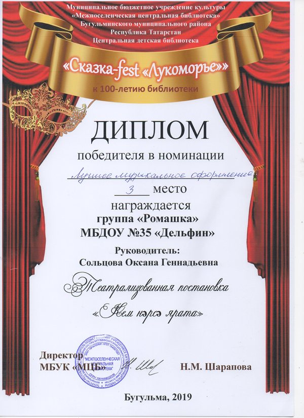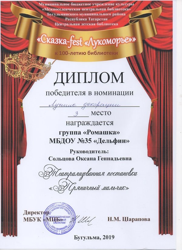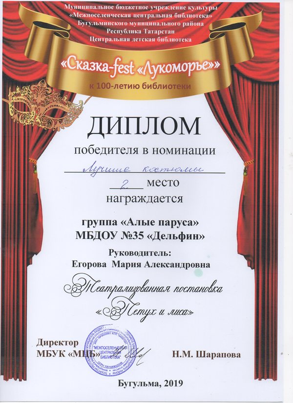 Опубликовано: 31.10.2019Наши воспитанники стали призерами конкурса Сказка- fest "Лукоморье", организованного детской библиотекой.