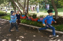 В рамках «Дня физкультурника» воспитанники бегали на скорость, прыгали в длину, играли с мячом через волейбольную сетку и в футбол.