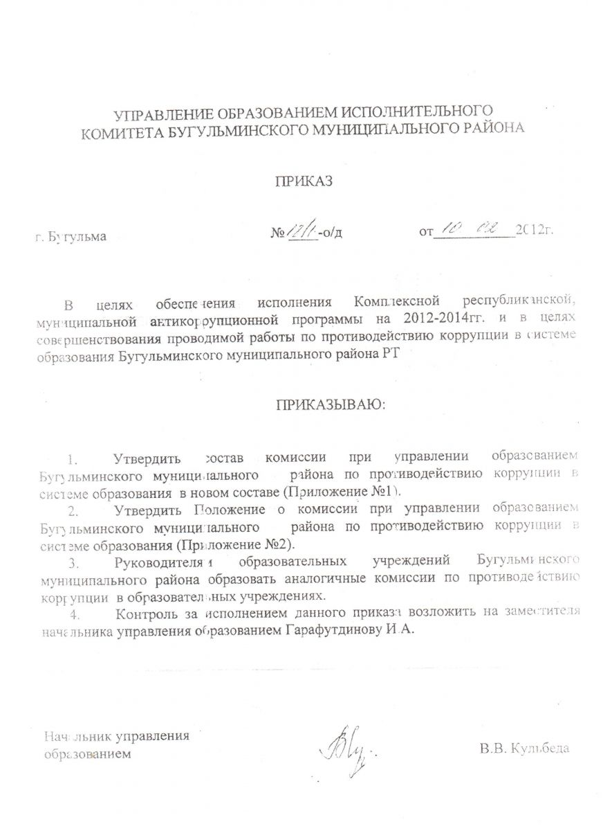 ⇒Положение о комиссии по противодействию коррупции при Управлении образованием исполнительного комитета Бугульминского муниципального района