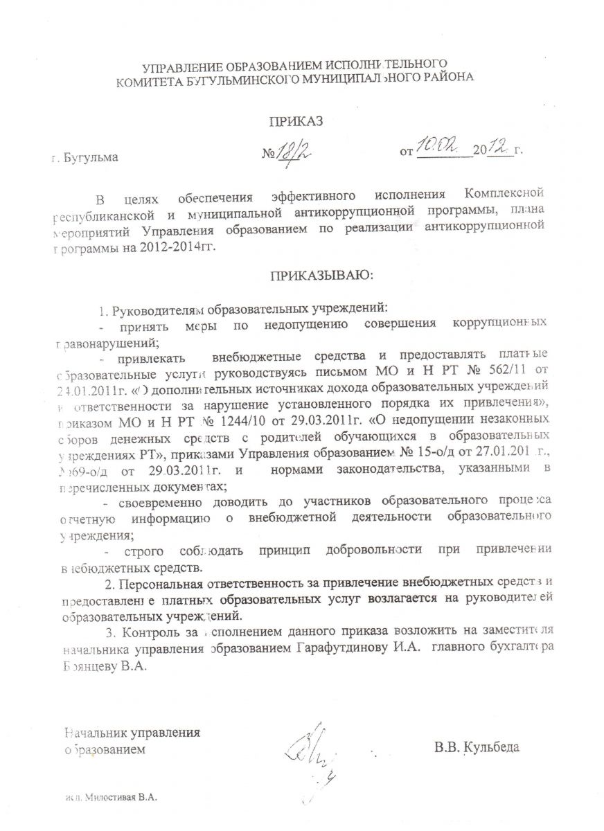 ⇒Комиссия по противодействию коррупции при Управлениии образованием исполнительного комитета Бугульминского муниципального района