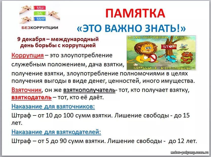 Памятка по противодействию коррупции
