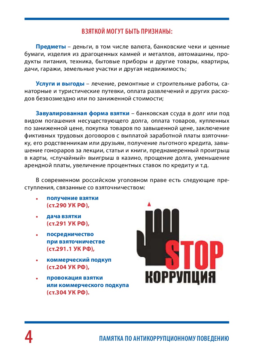 Памятки антикоррупционной направленности