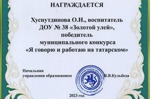 "Алтын күч" коллективы тәрбияче Хөснетдинова Ольга Николаевнаны "Мин татарча сөйләшәм һәм эшлим" муниципаль конкурсында җиңүе белән котлыйбыз. Алга таба иҗади җиңүләр һәм казанышлар телибез! Шулай тотарга!