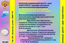 4 октября 2023 года КОНСУЛЬТАЦИОННЫЙ ЦЕНТР «ШАГ НАВСТРЕЧУ» проводит выездное просветительское мероприятие «С ЧЕГО НАЧИНАЕТСЯ РОДИНА. ПАТРИОТИЧЕСКОЕ ВОСПИТАНИЕ В СЕМЬЕ».