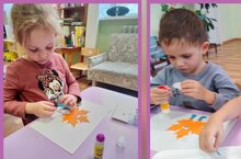 При создании аппликации "Листочек под дождём " дети учились правильно располагать поделку согласно образцу, умению работать с клеем и бумагой, а также развивать мелкую моторику рук и аккуратность к собственному творчеству. -