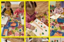 Воспитанники группы "Маленькие эльфы" заглянули в просторы лесного царства и увидели, что вся природа активно готовиться к зиме. Зверьки, например, делают запасы. Ребята изобразили увиденное в альбоме яркими красками ????