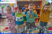 В младшей группе малыши ежедневно занимаются с шариками Су - Джок. Упражнения с использованием Су - Джок обогащают знания ребенка о собственном теле, развивают тактильную чувствительность, мелкую моторику пальцев рук, опосредственно стимулируют речевые области в коре головного мозга, а так же способствуют общему укреплению организма и повышению потенциального энергетического уровня ребенка.