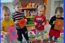 Сегодня к детям младшей группы в гости приходила кукла Маша, которая забыла подарить маме цветы на праздник и попросила помощи у детей. Дети с удовольствием помогли Маше сделать цветок.