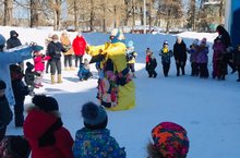 С чего начинается весна? Конечно, с проводов зимы. Вот и в нашем детском саду Масленицу отмечали широко, радостно, с хороводами да играми- забавами. Открыла праздник Матрешка. Не обошлись и без проделок Бабы Яги. Пришла к детям и Зима и не хотела уступат место Весне. В этом споре победила Весна, и Зиме пришлось уйти. Для Весны дети пели песни, водили хороводы. Традиционно праздник закончился чаепитием с блинами и катались, как в старину, на лошадке.